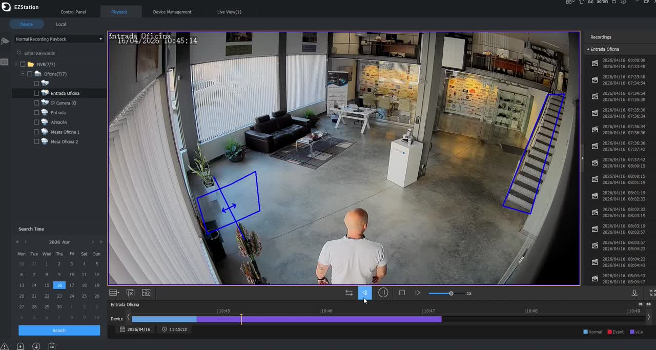 Una vez localizado el objetivo, el sistema nos presentará su trazabilidad por las zonas controladas en el periodo de tiempo designado.